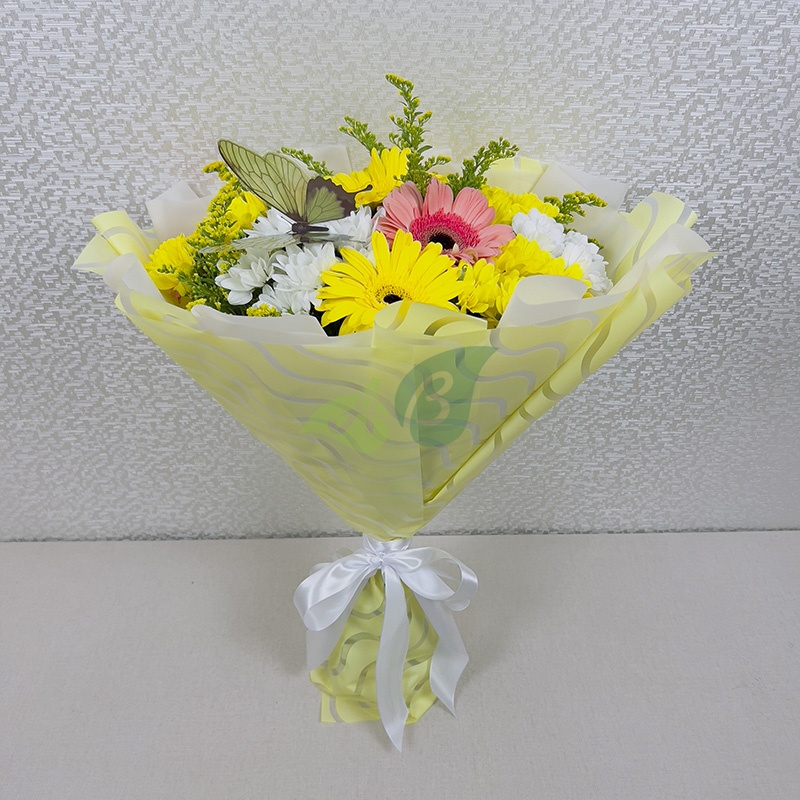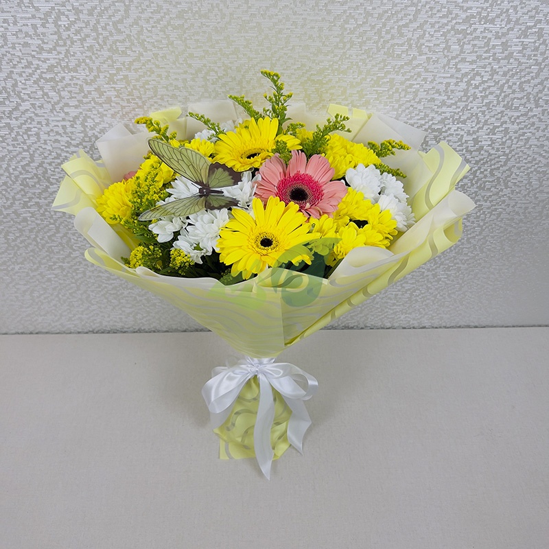 Состав и характеристики букета из гербер и хризантем "Крылья бабочки":